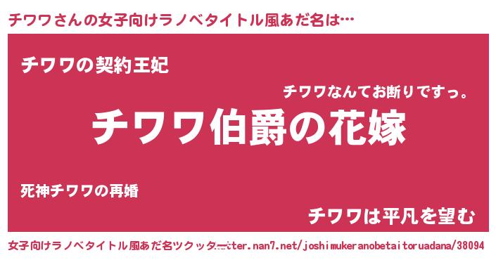 | ヘコむあだ名 | 『なまこ酢』『チワワ(爆)』『チワお』 |