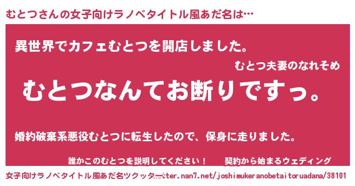| 意味不明あだ名 | 『自称むとつ』『永久保存むとつ』 |