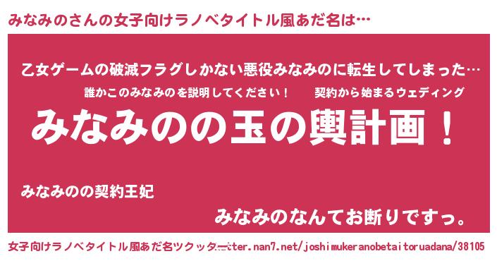 | 男性向けラノベタイトル風あだ名 | 『転生したらみなみのだった件』 |