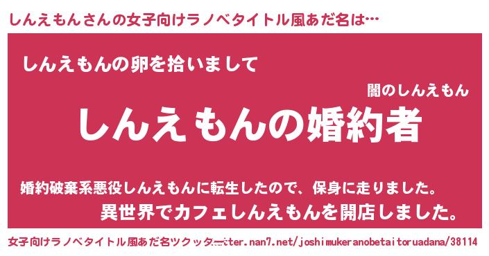 | 男性向けラノベタイトル風あだ名 | 『うちの娘の為ならば、俺はもしかしたらしんえもんも倒せるかもしれない。』 |