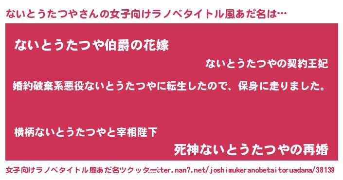 | 男性向けラノベタイトル風あだ名 | 『ナイトウタツヤスレイヤー』 |
