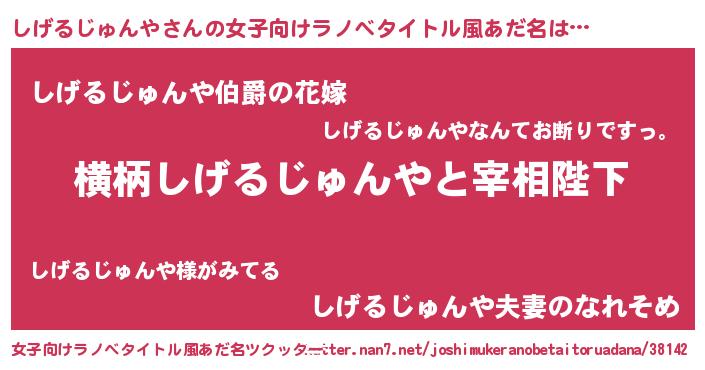 | 男性向けラノベタイトル風あだ名 | 『しげるじゅんやに滅ぼされるだけの簡単なお仕事です』 |