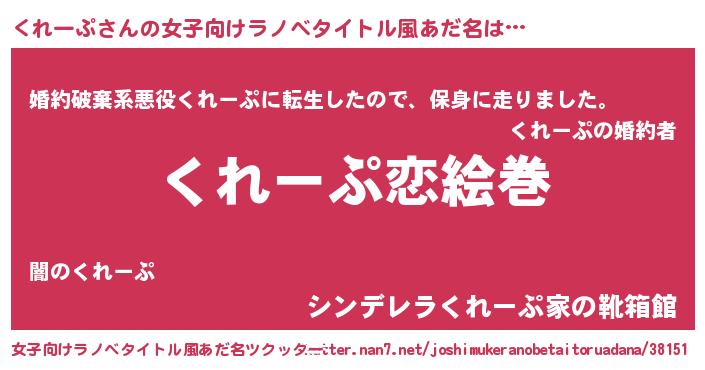 | 男性向けラノベタイトル風あだ名 | 『ノーゲーム・ノークレープ』 |