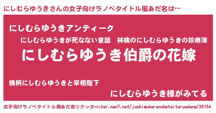 | ファンタジー風あだ名 | 『エターナルニシムラユウキー』 |
