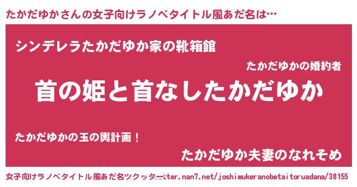 | 男性向けラノベタイトル風あだ名 | 『はたらくたかだゆかさま!』 |