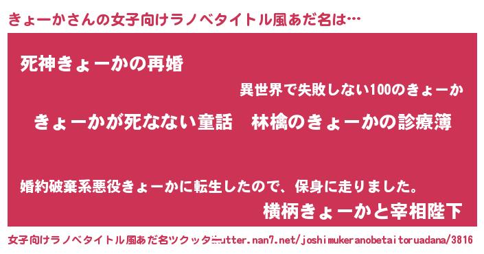 | ヘコむあだ名 | 『きょーか(笑)』『酢こんぶ』 |