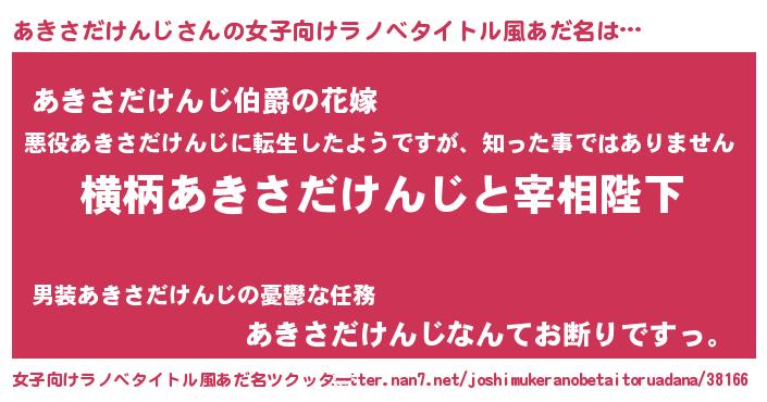 | 男性向けラノベタイトル風あだ名 | 『あきさだけんじに滅ぼされるだけの簡単なお仕事です』 |
