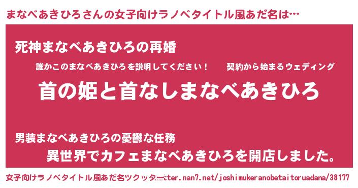 | 男性向けラノベタイトル風あだ名 | 『はたらくまなべあきひろさま!』 |