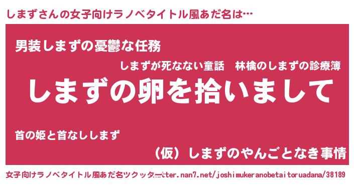 | 男性向けラノベタイトル風あだ名 | 『しまずの嫁は女の子じゃないと思った?』 |