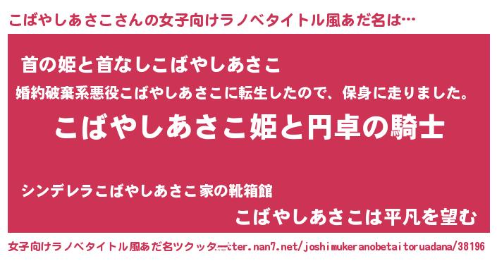 | 男性向けラノベタイトル風あだ名 | 『コバヤシアサコアートオンライン』 |