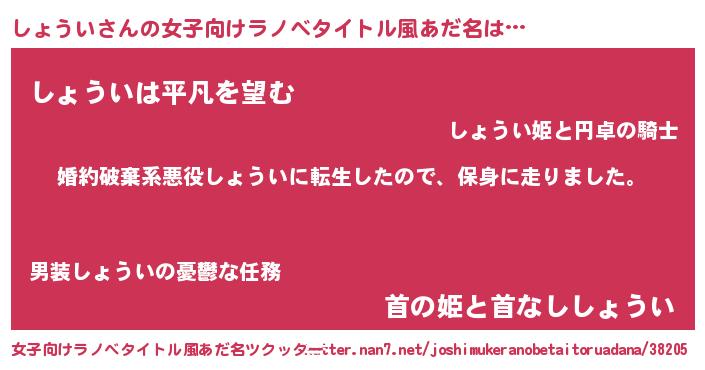 | 男性向けラノベタイトル風あだ名 | 『転生したらしょういだった件』 |