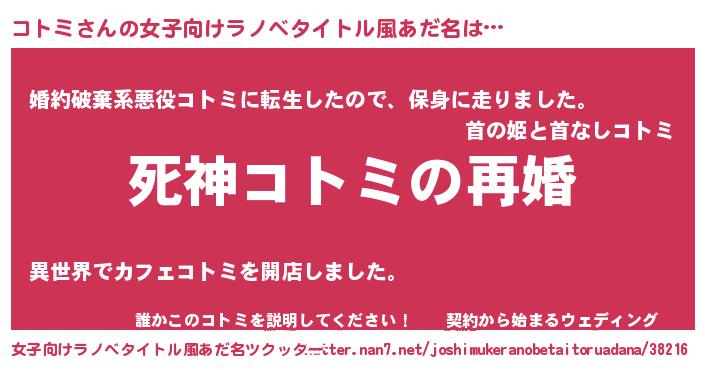 | 男性向けラノベタイトル風あだ名 | 『ノーゲーム・ノーコトミ』 |