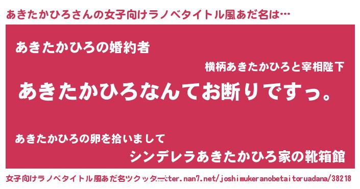 | 男性向けラノベタイトル風あだ名 | 『魔法科高校のあきたかひろ』 |