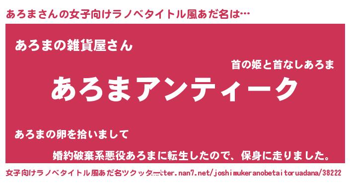 | 胡散臭い通販商品みたいなあだ名 | 『テレビで話題の高麗人参…その名も「あろま」』 |