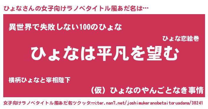 | 意味不明あだ名 | 『とにかく怪しいひょな』『自称ひょな』 |