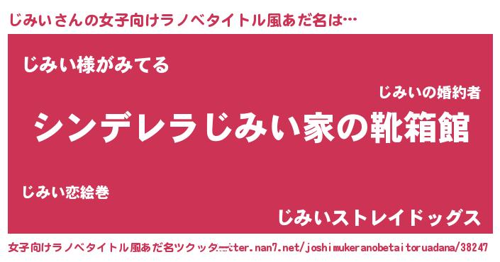 | 男性向けラノベタイトル風あだ名 | 『冴えないじみいの育てかた』 |