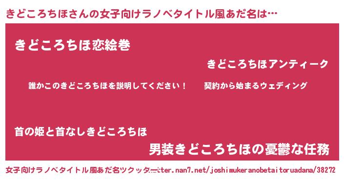 | 男性向けラノベタイトル風あだ名 | 『キドコロチホアートオンライン』 |