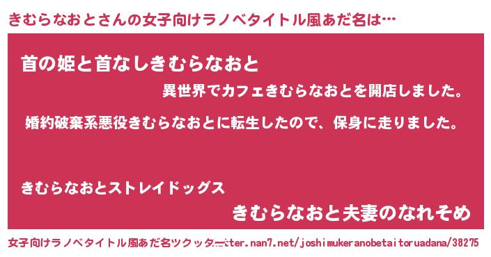 | 肩書あだ名 | 『きむらなおと上級大将』 |