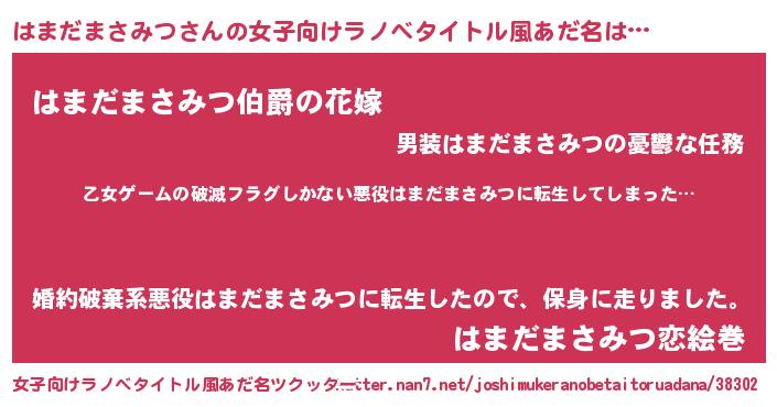 | 意味不明あだ名 | 『住所不定無職はまだまさみつ(62歳)』 |