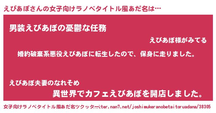 | 伝説のあだ名 | 『聞きしに勝る勇者えびあぼ』 |