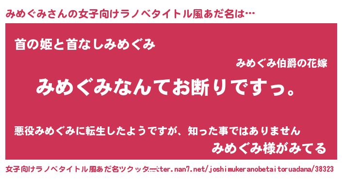 | 意味不明あだ名 | 『自称みめぐみ』『みめぐみフォーエバー』 |