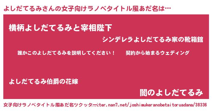 | 男性向けラノベタイトル風あだ名 | 『ヨシダテルミアートオンライン』 |