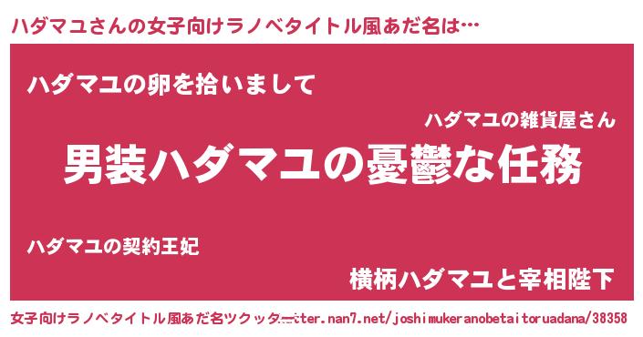 | 男性向けラノベタイトル風あだ名 | 『うちのハダマユが世界を掌握している!』 |