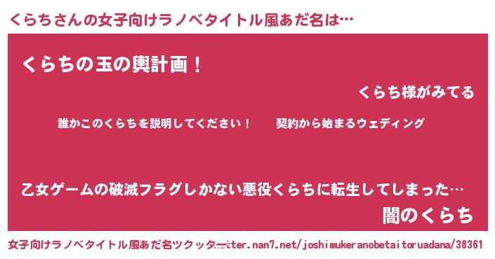 | 胡散臭い通販商品みたいなあだ名 | 『億万長者になれる水晶球…その名も「くらち」』 |