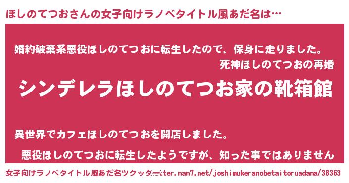 | 男性向けラノベタイトル風あだ名 | 『緋弾のホシノテツオ』 |