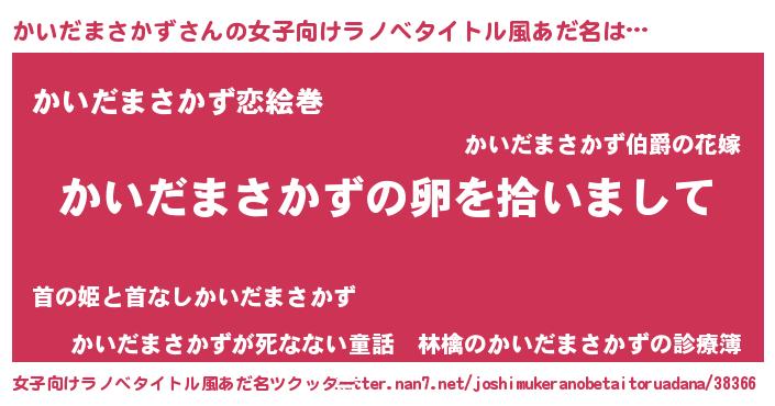 | 男性向けラノベタイトル風あだ名 | 『かいだまさかずの嫁は女の子じゃないと思った?』 |