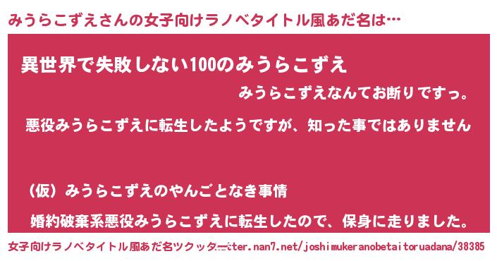 | ヒーロー風カッコイイあだ名 | 『仮面ミウダー』『ネオミウラコズエ』 |