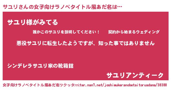 | 胡散臭い通販商品みたいなあだ名 | 『あなたにだけ特別に提供する限定10本のレアな日本酒…その名も「サユリ」』 |