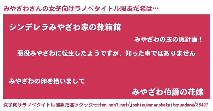 | 男性向けラノベタイトル風あだ名 | 『この素晴らしい世界にみやざわを!』 |