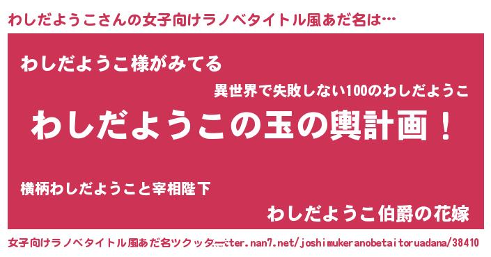 | 胡散臭い通販商品みたいなあだ名 | 『全米が絶賛したサプリメント…その名も「わしだようこ」』 |