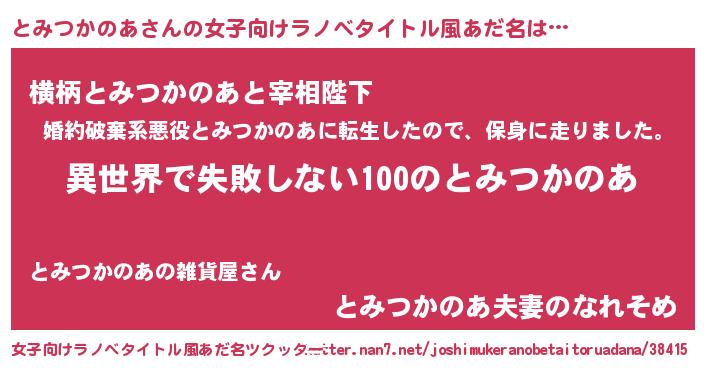 | 男性向けラノベタイトル風あだ名 | 『とみつかのあという概念が存在しない退屈な世界 』 |