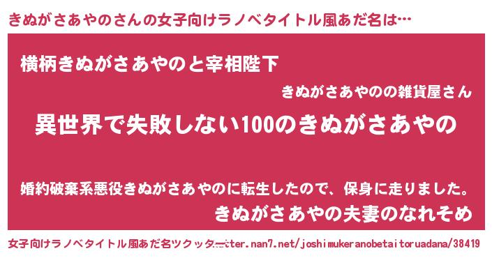 | 意味不明あだ名 | 『永久保存きぬがさあやの』 |