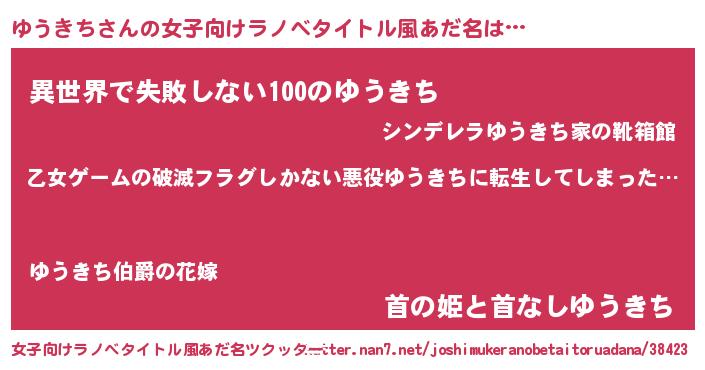 | ヒーロー風カッコイイあだ名 | 『仮面ユウダー』『ネオユウキチ』 |