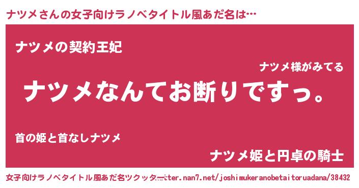 | 男性向けラノベタイトル風あだ名 | 『魔法科高校のナツメ』 |