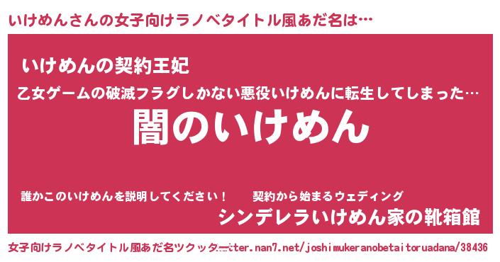 | 男性向けラノベタイトル風あだ名 | 『Re:いけめんから始める異世界生活』 |