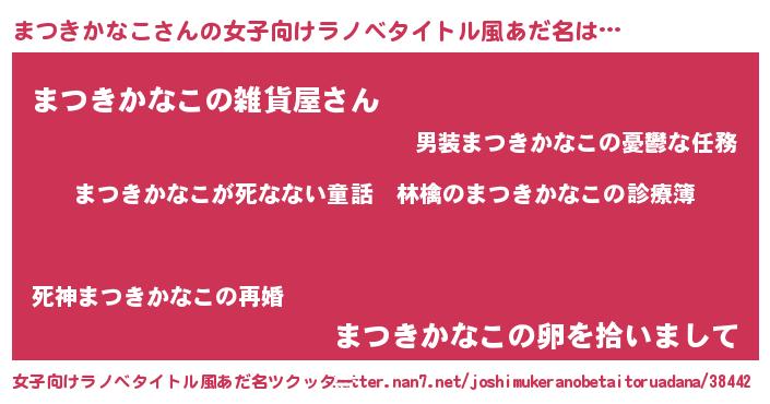 | 男性向けラノベタイトル風あだ名 | 『魔弾の王とまつきかなこ』 |