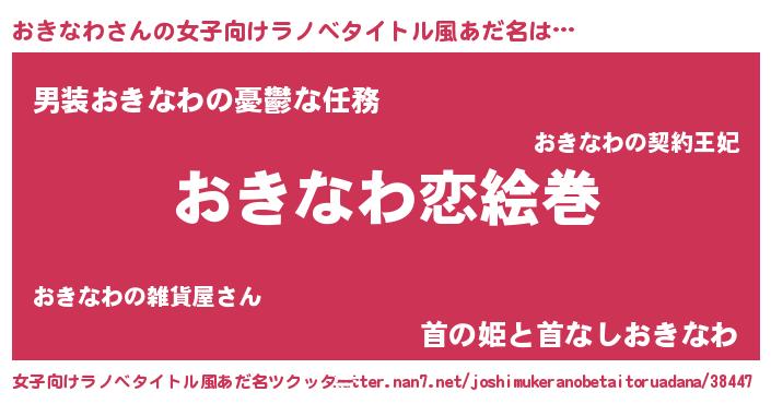 | 男性向けラノベタイトル風あだ名 | 『ノーゲーム・ノーオキナワ』 |