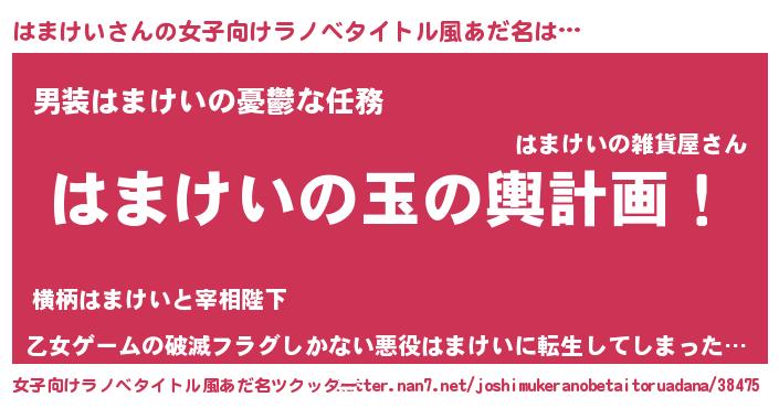 | 男性向けラノベタイトル風あだ名 | 『転生したらはまけいだった件』 |