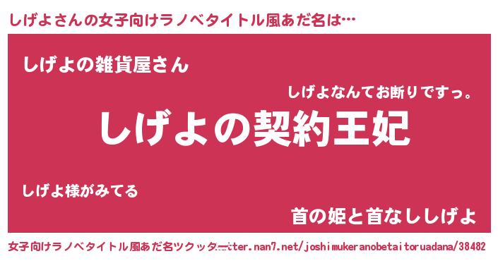 | ヘコむあだ名 | 『しげよ(笑)』『牛乳』『しげぷりん』 |