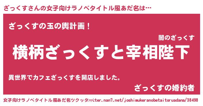 | 意味不明あだ名 | 『ニラ科ざっくす属』『自称ざっくす』 |