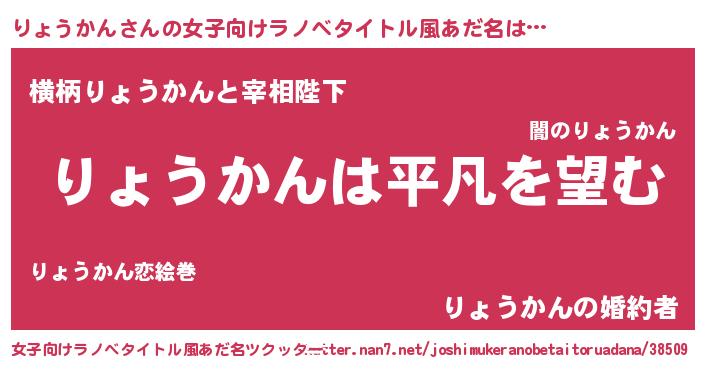 | 胡散臭い通販商品みたいなあだ名 | 『信頼と実績のサプリメント…その名も「りょうかん」』 |