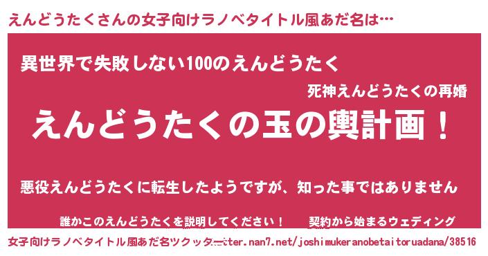 | ヘコむあだ名 | 『えんどうたく(小並感)』『えんもー』 |