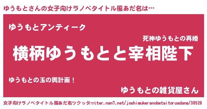 | 男性向けラノベタイトル風あだ名 | 『ゆうもとに滅ぼされるだけの簡単なお仕事です』 |