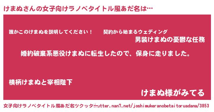 | 男性向けラノベタイトル風あだ名 | 『ケマヌスレイヤー』 |