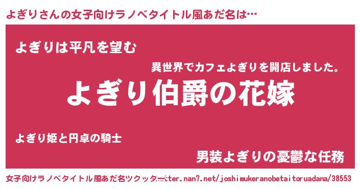 | ヘコむあだ名 | 『なまこ酢』『よぎを』『よぎもー』 |