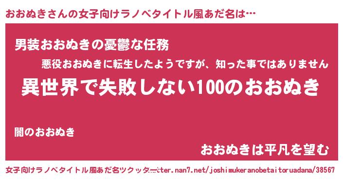 | 男性向けラノベタイトル風あだ名 | 『おおぬきという概念が存在しない退屈な世界 』 |